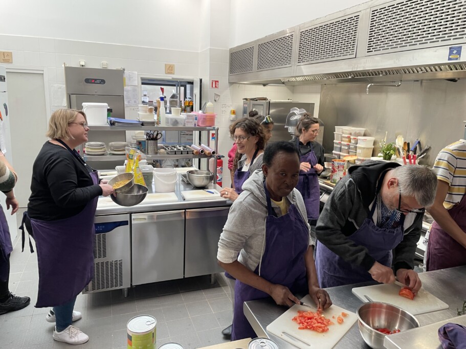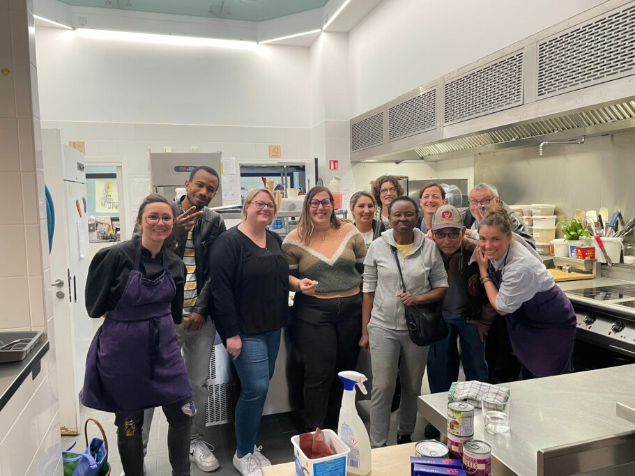 Nous proposons depuis 2023 des ateliers de cuisine pour les personnes accompagnées par trois associations qui font de la distribution alimentaire à Malakoff : le Secours Populaire, La Porte Bleue et Oasis des Familles (Secours Catholique).